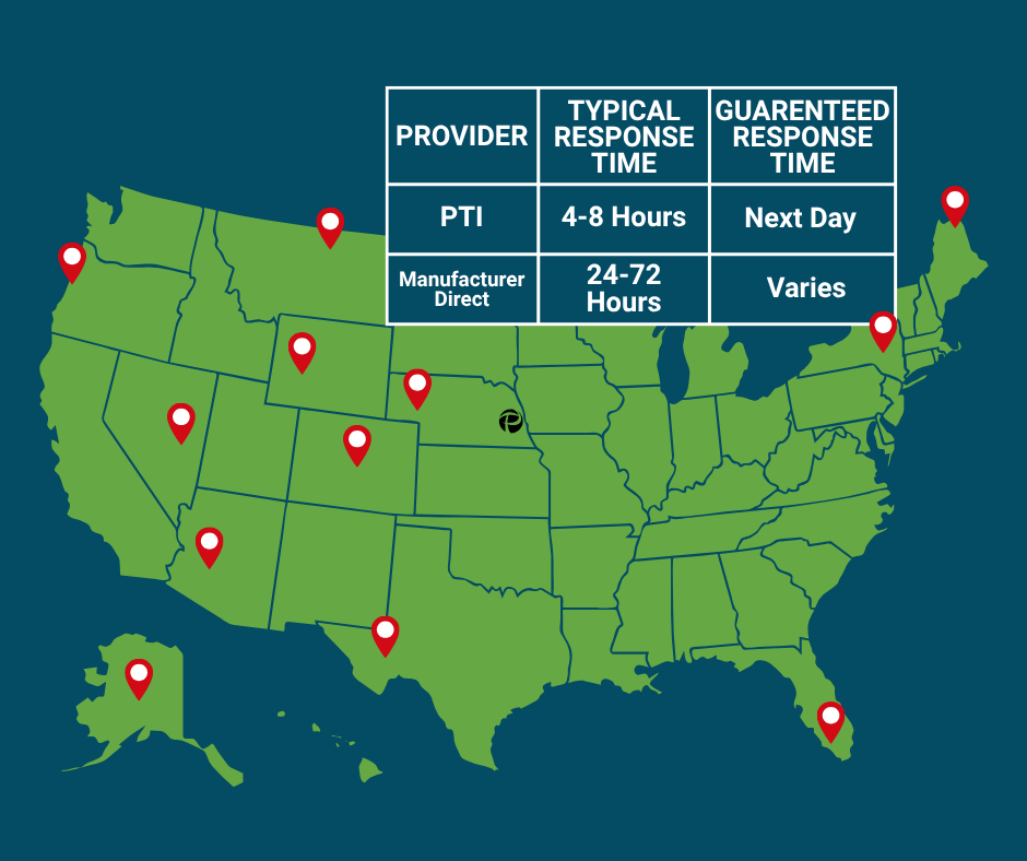 When our clients call, they don’t get routed through a generic manufacturer hotline or wait hours (or days) for a callback. Instead, the moment you contact us, our team gets the ball rolling. We coordinate directly with our field technicians and dispatch the right expert for your site — often within hours of your initial call.